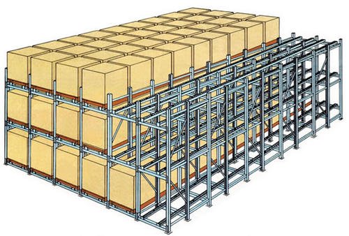 在貨架的組與組之間沒有作業通道,從而增加了60%的空間利用率,提高了倉儲的容積率;托盤操作遵循先進先出的原則;自動儲存回轉;儲存和揀選兩個動作的分開大大提高輸出量,由于是自重力使貨物滑動,而且沒有操作通道,所以減少了運輸路線和叉車的數量